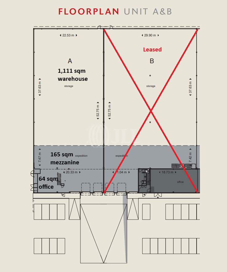Elke unit heeft twee loading docks en één overheaddeur op maaiveld.